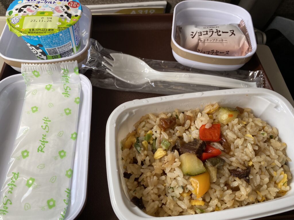 ラウンジで散々食べてたのに、もったいない精神で頼んだら、これが意外と美味い!肉がゴロゴロ入っててペロッと完食。機内はほぼ中国人で、みんな大声で喋ってて日本じゃ味わえない雰囲気だったよ。異文化体験って感じで面白かった。